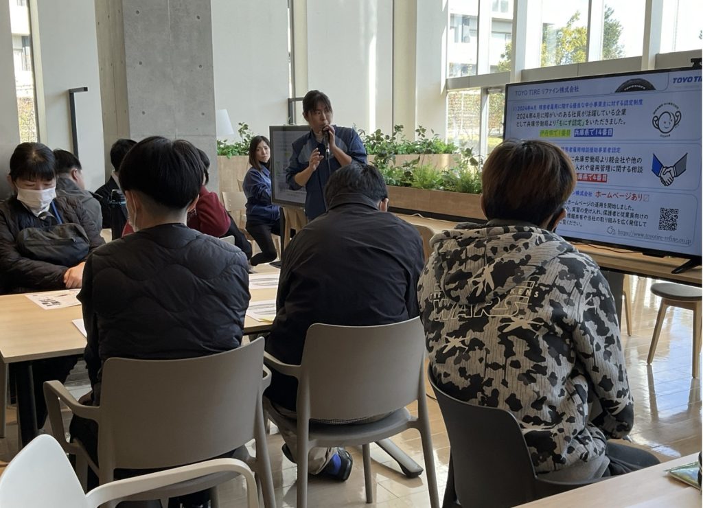 午後からは別の場所へ訪問予定があるとの事で、短い時間ではありましたが会社説明の他に就労する為の心構え、タイヤに関するクイズなどを行いました。